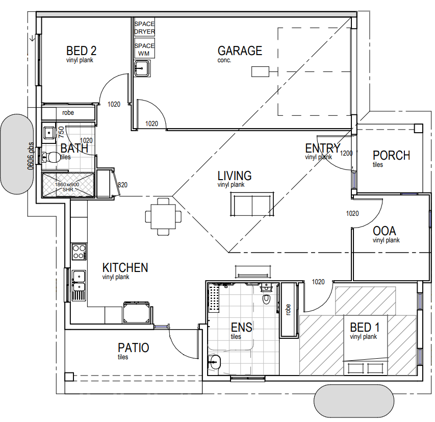 • 1 HPS bedroom, with an ensuite and SDA accessibility options, split system air conditioning and capacity for ceiling hoists if required.