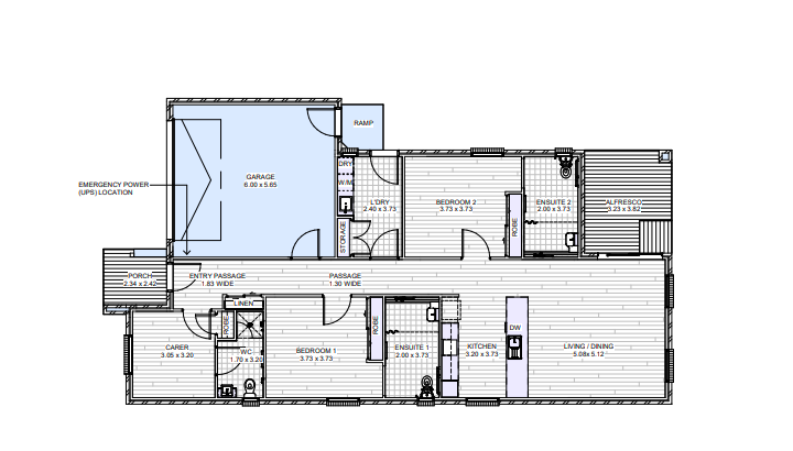 This home features two spacious participant bedrooms with private ensuites, plus a dedicated Onsite Overnight Assistance room.