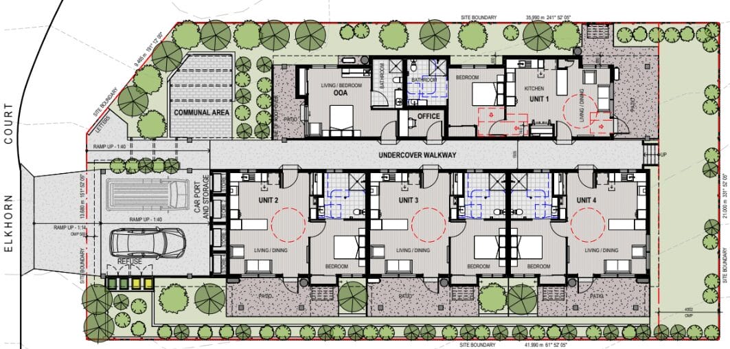 4 x High Physical Support SDA villas in Norman Gardens. Private 1-bedroom villas + OOA, step-free access, high-contrast design, modern finishes, undercover walkways – minutes to Stockland, hospitals and CQUniversity.