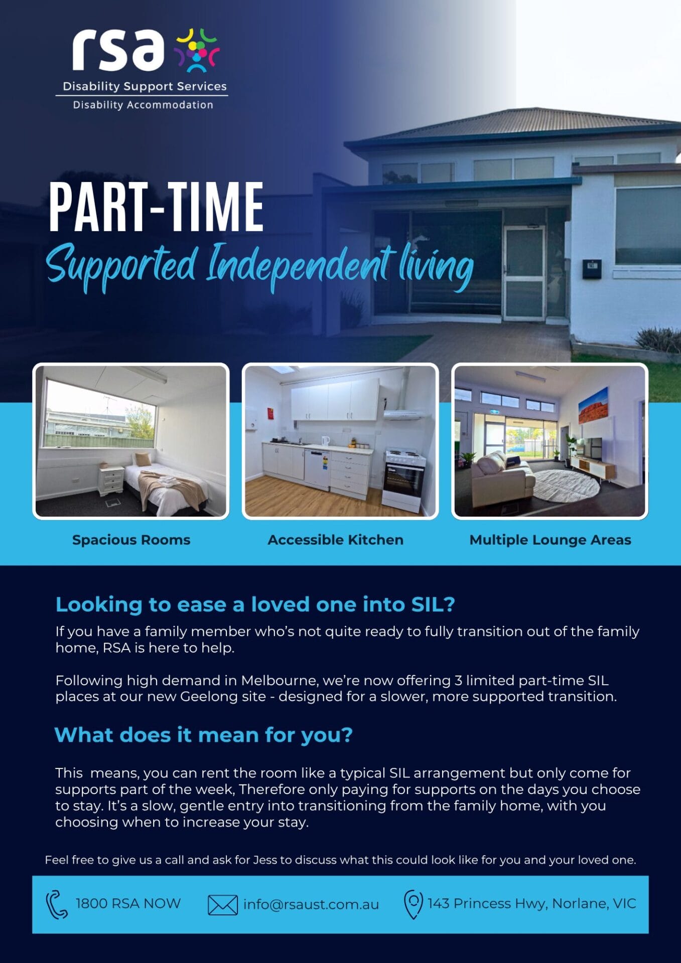 At RSA Norlane we believe great support starts with genuine care. We are committed to person-centered practices that build confidence, independence and joy in everyday living. Our team works closely with families, support coordinators, and allied health professionals to ensure every participant thrives.