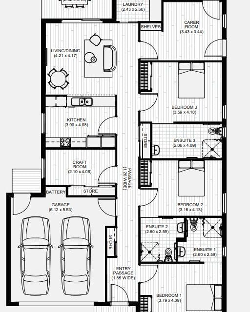The home includes three bedrooms, each with its own private ensuite. Residents will enjoy a spacious shared living and dining area, designed for ease of movement, along with a beautifully appointed outdoor alfresco area for relaxation and socialising. An additional craft room is available for hobbies and creative pursuits.